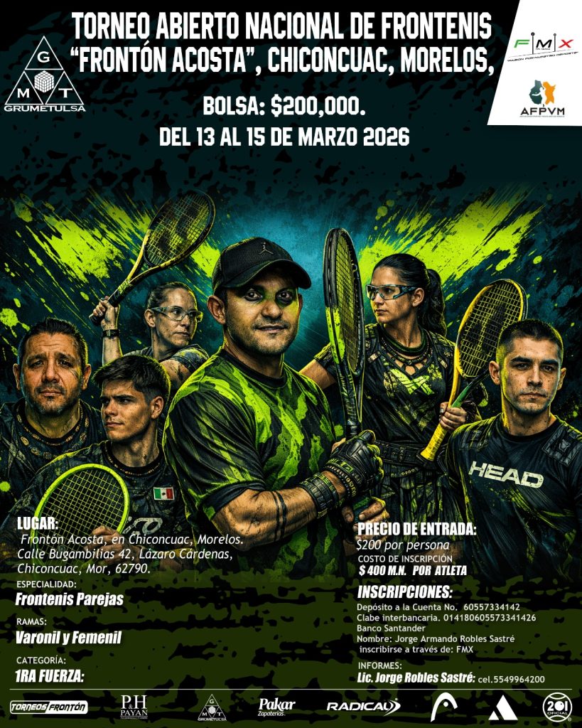 Los pelotaris que quieran participar en un Campeonato Nacional o un Torneo Abierto avalado por la FMX, deberán de estar afiliados o afiliarse en ese momento a la FMX. También estará permitida la Tarjeta de participación para el Torneo Abierto, la cual es exclusiva para dicho Torneo y caduca terminando el mismo.